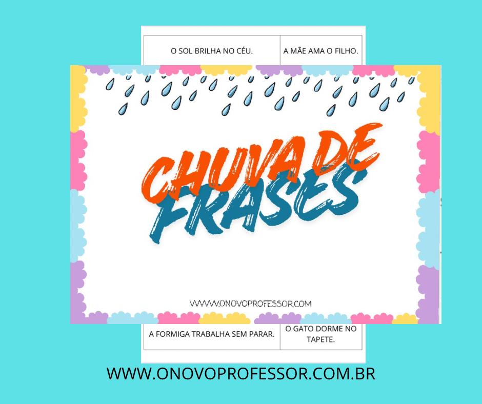 A atividade “Chuva de Frases” tem como objetivo promover a leitura e a escrita de frases simples, incentivando a formação de sentenças com sentido completo.