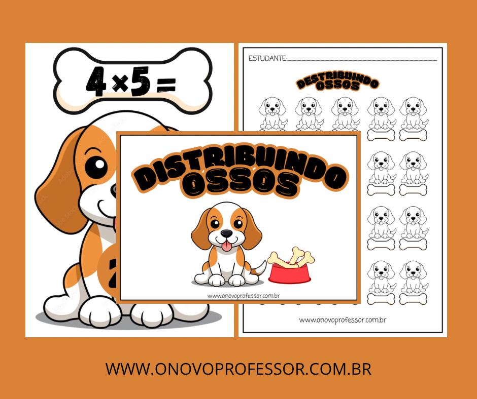 Distribuindo Ossos, 🦴 Descrição da Atividade – “Distribuindo Ossos” A atividade “Distribuindo Ossos” propõe exercícios de multiplicação com números de 1 a 3 algarismos, estimulando