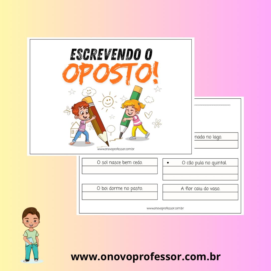 A atividade “Escrevendo o Oposto” tem como objetivo desenvolver o raciocínio linguístico, o vocabulário e a compreensão semântica dos alunos em processo de alfabetização. A