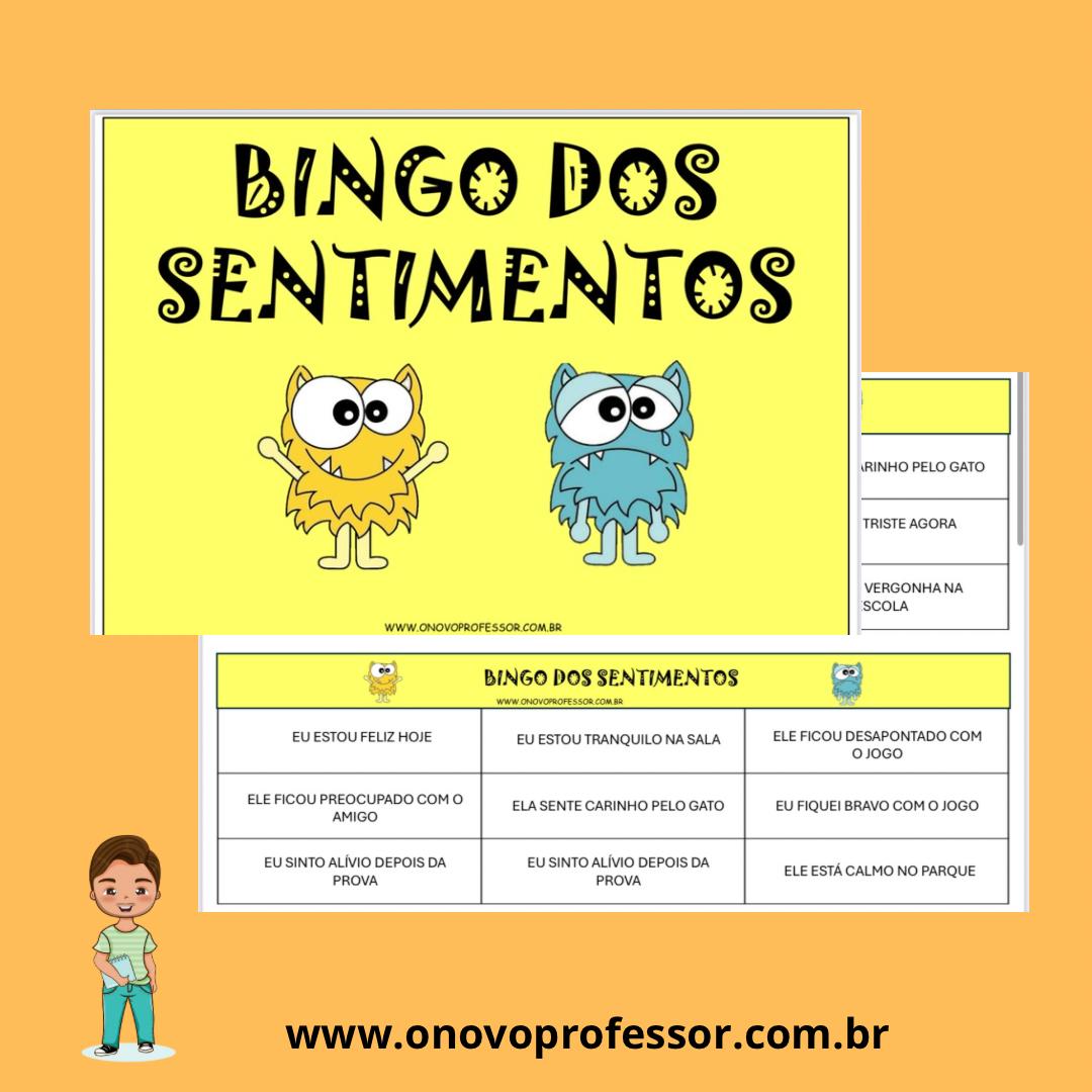 Bingo dos Sentimentos, São 14 cartelas diferentes – fazer em dupla A atividade “Bingo dos Sentimentos” tem como objetivo desenvolver nas crianças a capacidade de