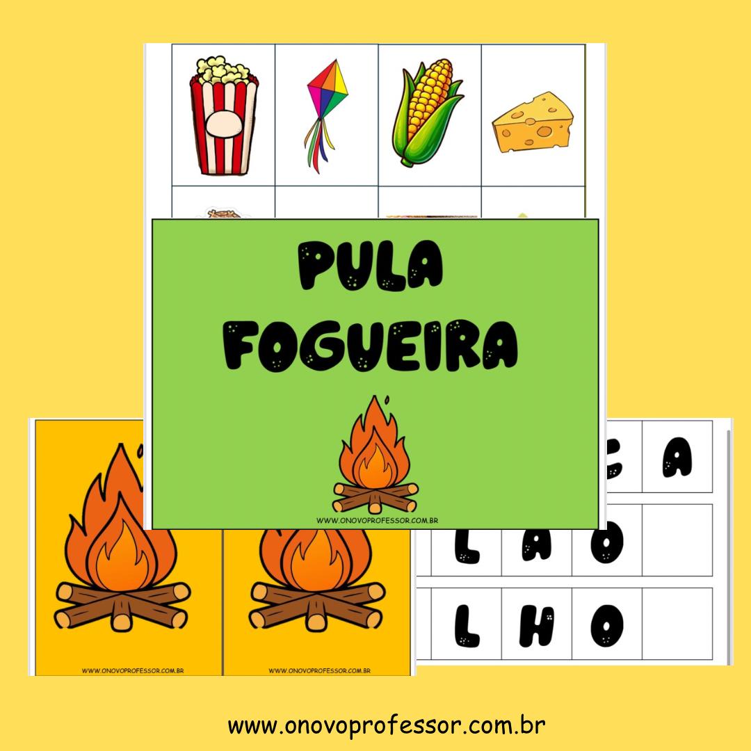 Pula Fogueira, Uma atividade de formação de palavras juninas com muita diversão para estimular as crianças. Eu escolhi palavras com estrutura silábicas diferentes para poder
