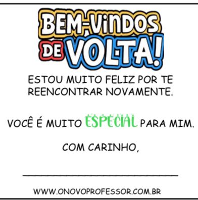 Cartão de bem-vindos!, Fiz esse cartão para entregar as crianças no primeiro dia de aula. Ele pode ser usado de diferentes formas: colado no caderno,