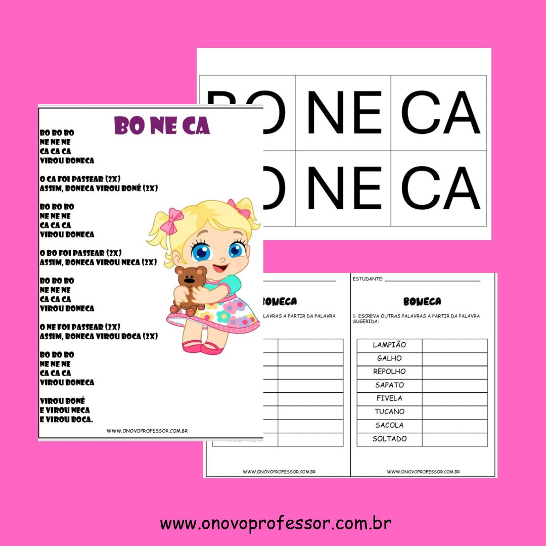 BO BO BO NE NE NE CA CA CA – TROCA DE PALAVRAS, Atividade musical para trabalhar palavra dentro de palavra. Nessa atividade a